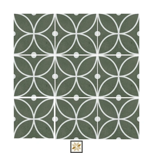 Details: Moroccan Wall & Floor Tile in Greek decor, 200 x 200 mm (8x8 inch) from the Morrocans series. Vitrified green tile with a durable matte finish and 9 mm thickness, designed for both wall and floor applications. Supplied in packs of 20 pieces, this tile is suitable for residential and commercial projects. Highlights: Vitrified construction for strength and low water absorption Matte finish for reduced glare and improved grip Dual-use design for wall and floor installations Greek decor pattern with Moroccan look in green Standard 200 x 200 mm (8x8 inch) size and 9 mm thickness; pack quantity: 20 pieces Usecases: Ideal for living room floors and feature walls, bathroom floors and wall cladding, kitchen floors and backsplashes, and light commercial areas such as lobbies, cafés, and retail interiors