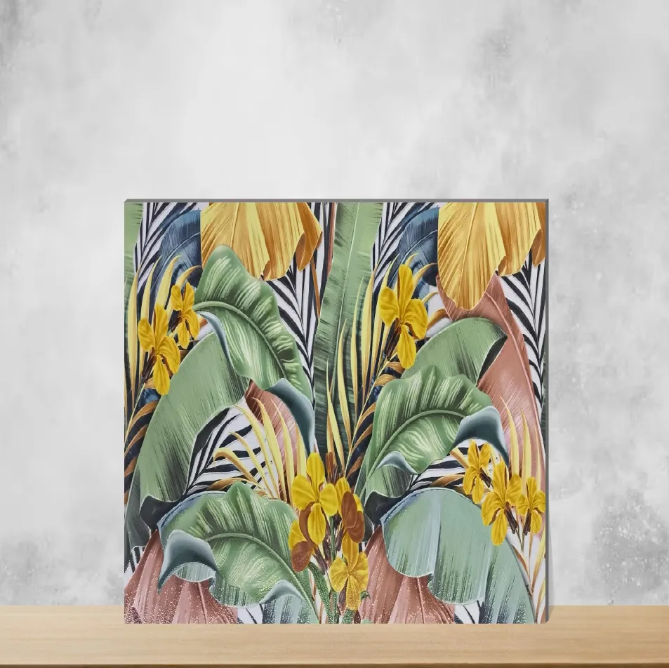Details: Floral Wall Tile Jungle Light B is a 24x12 inch (2 ft x 1 ft) rectangular ceramic wall tile in Multi Colour with a matte finish from the Tropical Florals series. At 9 mm thickness, this designer tile is made for indoor use in both residential and commercial projects. Supplied in packs of 5 pieces, it combines an eye-catching floral look with practical performance—ideal for living rooms, bathrooms and kitchens. Highlights: - Designer floral appearance with Multi Colour pattern for striking feature walls - Ceramic base with matte finish for low glare and a premium look - 24x12 inch (2 ft x 1 ft) size, 9 mm thickness — sturdy and easy to install on walls - Wall-specific rectangular tiles, suitable for indoor applications in homes and businesses - Durable and low-maintenance: water resistant, scratch resistant, easy to clean, long lasting - Technical protections: chemical resistance, frost proof, UV protection, fire retardant, thermal impact resistance, weather resistant - Pack quantity: 5 pieces per pack; ideal for accent walls, backsplashes and coordinated wall schemes Usecases: - Living room feature walls and accent panels to add a tropical floral statement - Bathroom walls and shower surrounds where water resistance and frost proofing are needed - Kitchen backsplashes and wall cladding that demand easy-to-clean, durable ceramic surfaces - Commercial interiors such as hotel lobbies, restaurants or retail spaces seeking a designer look with reliable performance