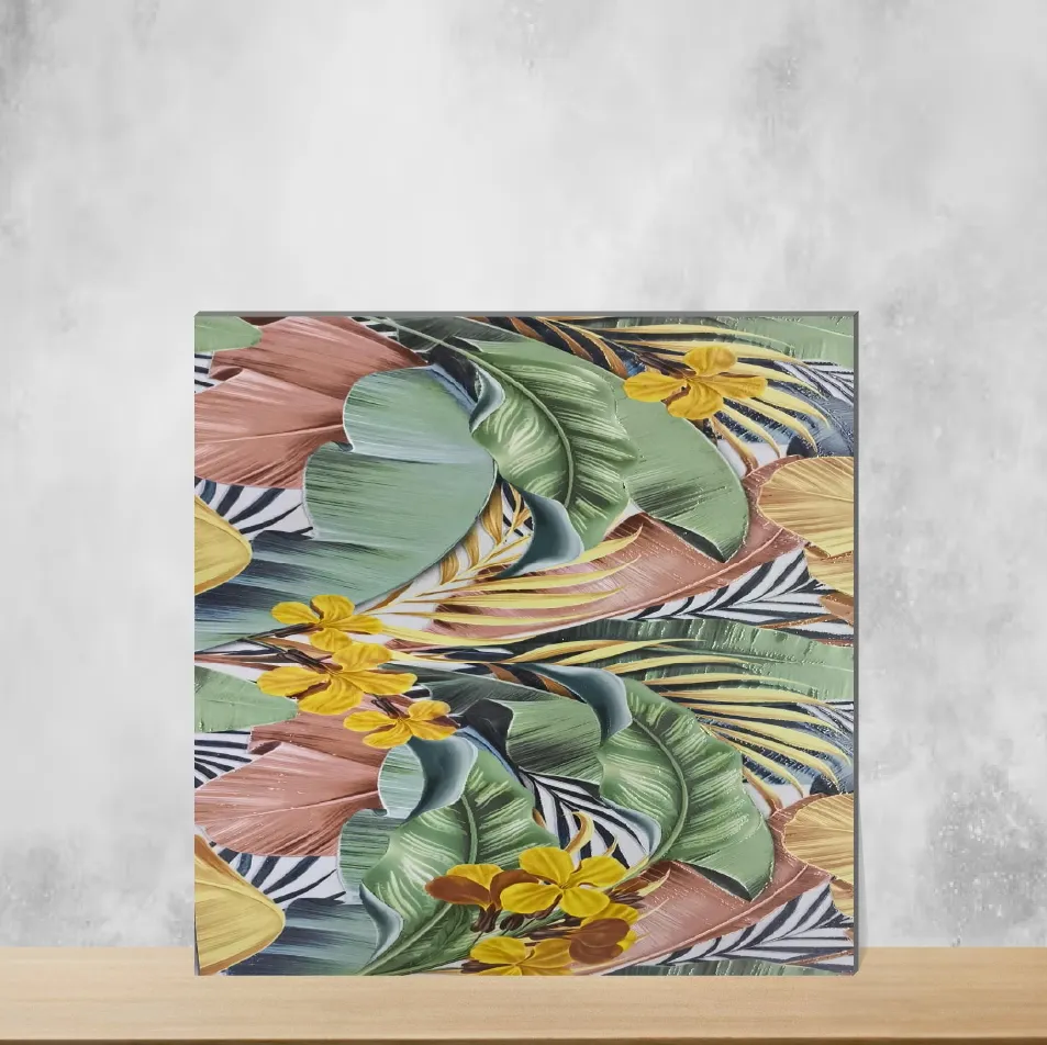 Details: Floral Wall Tile Jungle Light A is a 24x12 inch (600 x 300 mm) rectangular ceramic wall tile featuring a tropical floral pattern in Multi Colour. With a 9 mm thickness and matte finish, this designer wall tile comes in packs of 5 and belongs to the Tropical Florals series. Made for indoor use in both residential & commercial projects, it’s ideal for living rooms, bathrooms and kitchens. Highlights: Matte ceramic finish with eye-catching tropical floral look; Designer tiles in Multi Colour; Size 2 ft x 1 ft (24x12 inch), 9 mm thickness; Chemical-resistant, water-resistant and easy to clean; Scratch-resistant and long lasting; UV protection, frost-proof and fire-retardant; Thermal impact resistance—built for durable indoor wall applications. Usecases: Create accent and feature walls in living rooms; Use as bathroom and shower walls or shower surrounds; Kitchen backsplashes and decorative wall panels; Suitable for both residential and commercial indoor wall installations where a durable, decorative ceramic tile is required.