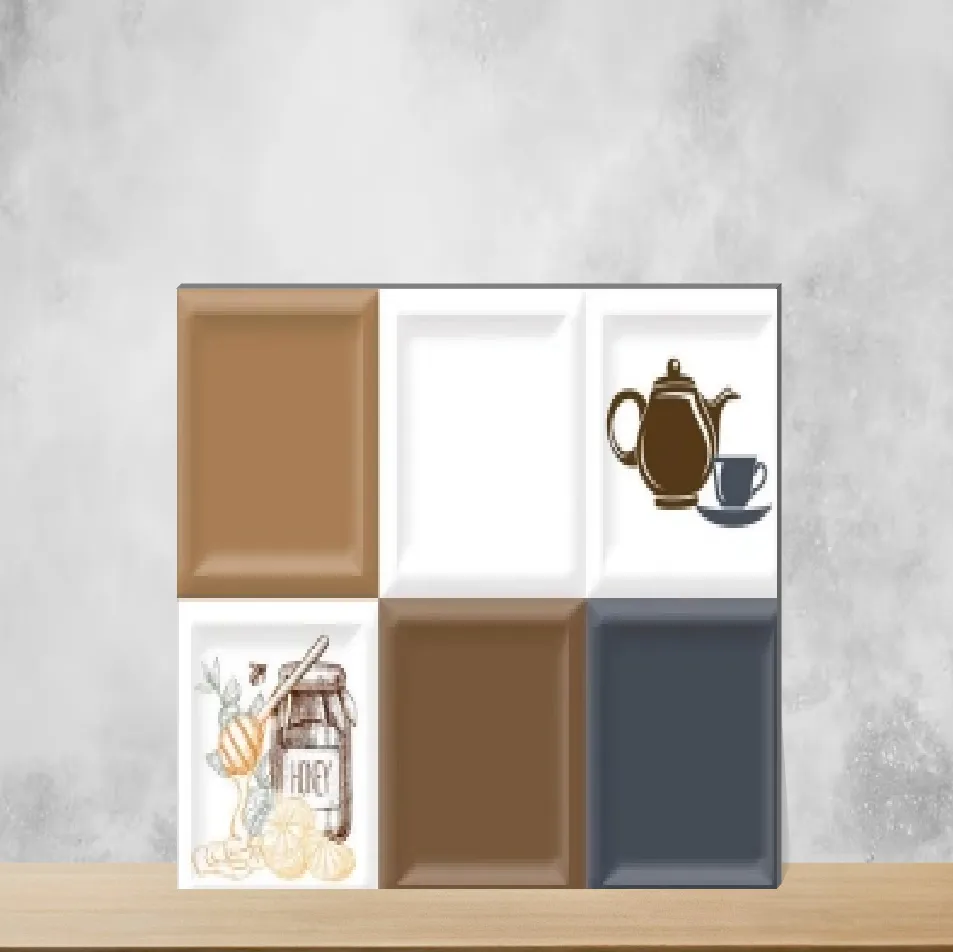 Highlighter Tiles in Multi Colour are digitally printed ceramic wall tiles measuring 300 x 450 mm (12 x 18 inch) with a glossy surface and a 6 mm ceramic body. Designed for indoor wall applications, these Digital Ceramic tiles combine vibrant multi-colour visuals with durable ceramic construction. Supplied as a pack of 6 pieces, they are suitable for both residential & commercial interiors and are easy to clean and maintain.