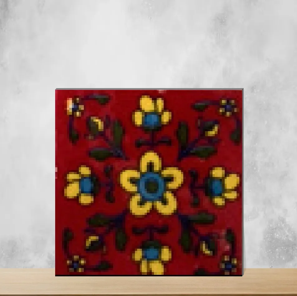 Details: Florica Ruby Blossom is a handcrafted 2 x 2 inch ceramic tile with a glossy finish and 7 mm thickness, inspired by traditional Athangudi floral and rangoli motifs. Designed for vertical indoor use, these tiles add vibrant, artisanal charm to walls. Sold in packs of 10 pieces. Highlights: - Handcrafted Athangudi-inspired floral and rangoli patterns - Glossy ceramic surface for vivid color and easy cleaning - 7 mm durable profile optimized for wall installation - Easy to install; suitable for residential and commercial interiors Usecases: - Kitchen backsplashes and accent walls - Bathroom backsplashes and basin feature walls - Stair risers and furniture cladding for colorful accents - Balcony and other upright surfaces where handcrafted tiles enhance decor