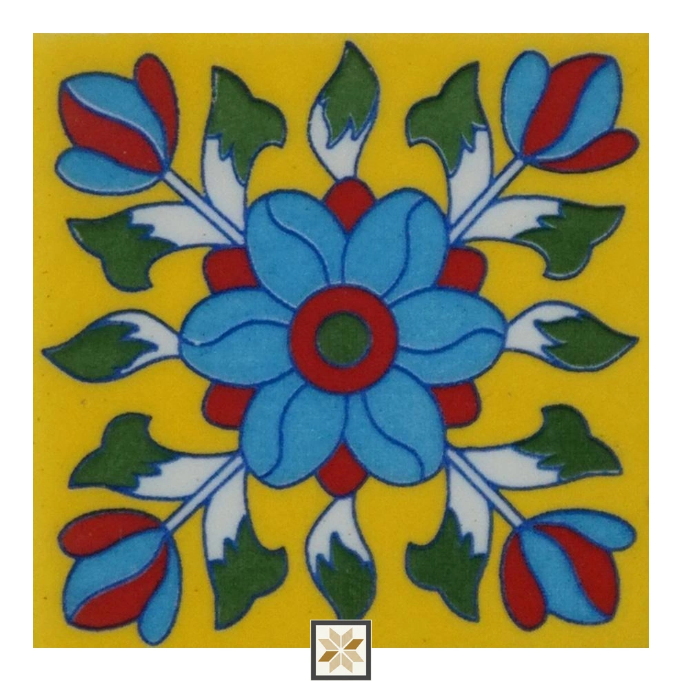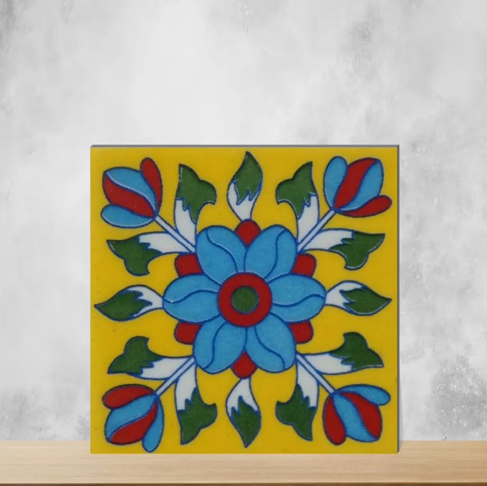 Details: Sunshine Spark from Florica delivers handcrafted Athangudi-inspired floral and rangoli tiles in vibrant yellow. These 4 x 4 inch ceramic tiles have a glossy finish, 7 mm thickness and random faces, designed for vertical wall use to add traditional Indian charm. Highlights: - Handcrafted ceramic with detailed floral and rangoli motifs - Glossy surface for enhanced color and easy cleaning - 4 x 4 inch size, 7 mm thickness, random faces for unique patterns - Designed for upright installations; easy to install and maintain Usecases: - Kitchen backsplashes and accent walls - Bathroom backsplashes and basin accents - Stair risers and furniture accent surfaces - Balconies and other indoor vertical surfaces