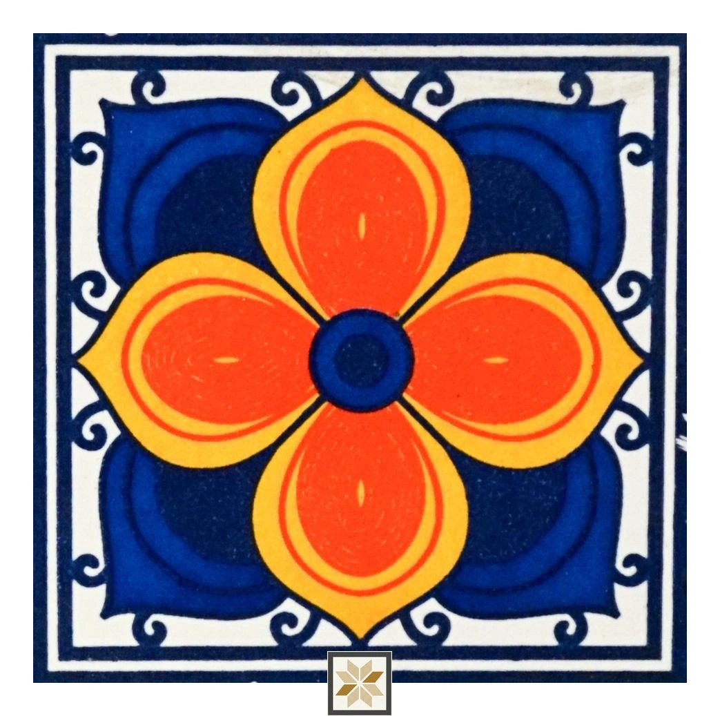 Vitrified Florica Flame Flower Handmade Tiles Glossy Square Tiles TL-93-C (4x4 inch | 7 mm)