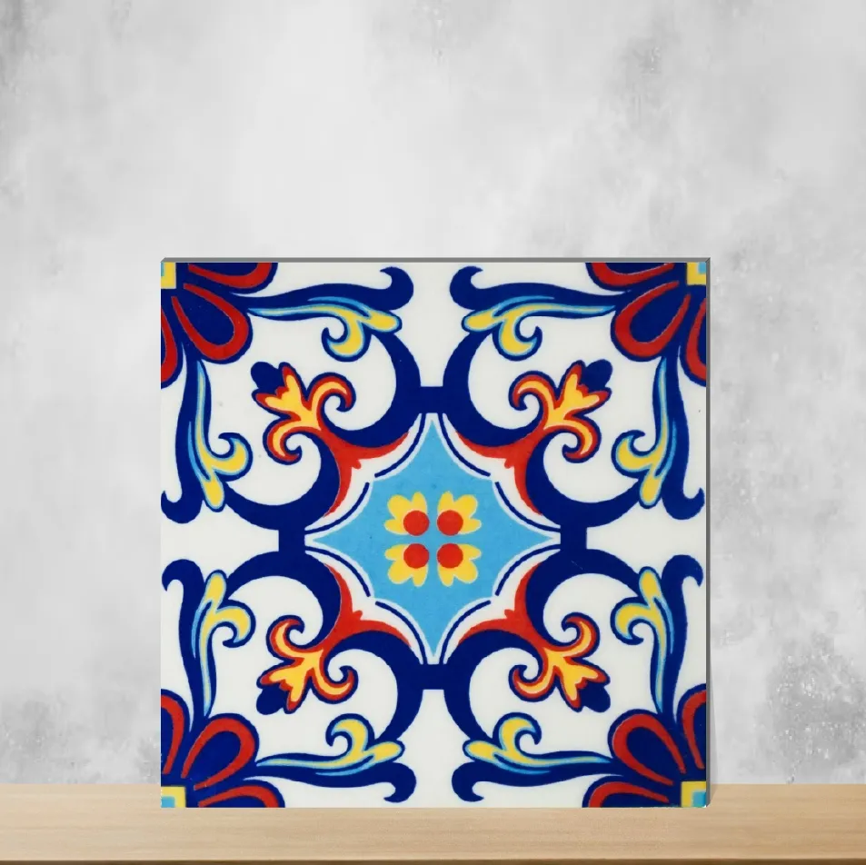 Details: Ornato Blossom by Florica adapts classic Athangudi floral and rangoli motifs into handcrafted ceramic wall tiles. These glossy, multi‑colour tiles are handmade with a 6x6 inch face and 7 mm thickness, designed for vertical interior use and easy maintenance. Highlights: - Handcrafted ceramic tiles featuring detailed floral and rangoli Athangudi patterns - Glossy finish that enhances colour vibrancy and is easy to clean - Intended for vertical surfaces; sturdy 7 mm thickness - Moroccan-inspired look in multi colour that pairs with varied decor - Sold in packs (10 pieces); ideal for focal areas and accents Usecases: - Kitchen backsplashes to add ethnic, handmade charm - Bathroom walls, backsplashes or basin accents for a heritage-inspired appearance - Stair risers and furniture fronts to create colourful focal points - Any indoor vertical surface where artisanal, decorative tiles are desired