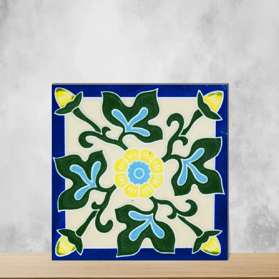 Details: Florica Petal Harmony handmade ceramic tiles draw on Athangudi-inspired floral and rangoli motifs, crafted with a glossy glaze on a 6x6 inch body and 7 mm thickness. Each handcrafted tile adds vibrant, heritage-rich color and is designed primarily for vertical indoor surfaces. Highlights: - Handmade ceramic construction with high-gloss finish - Intricate floral and rangoli Athangudi patterns - Size: 6x6 inch; Thickness: 7 mm - Wall use; easy to clean and easy to install - Multi-colour, Moroccan-inspired look for decorative accents Usecases: - Kitchen backsplashes and accent strips - Bathroom backsplashes, basin surrounds and feature walls - Stair risers and furniture insets for a colorful statement - Balcony and any upright indoor surface to introduce traditional Indian charm