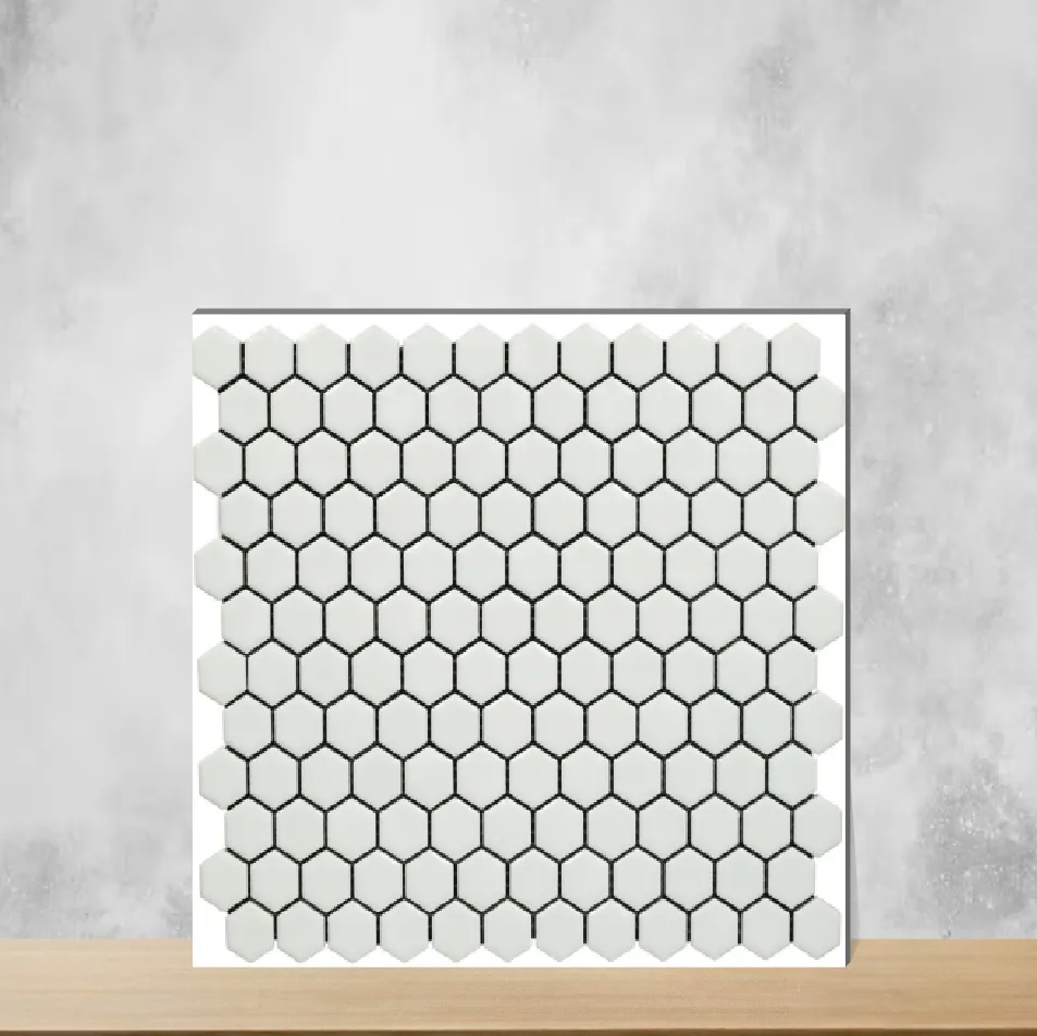 Details: Hexa Mosaico Blanca Cix ceramic mosaic tile delivering a glossy white mosaic appearance for residential and commercial interior walls. Each panel measures 258.1 x 258.1 mm with chip size 23 x 26.6 mm, 8 mm thickness, and a 10x12 inch display size. The vitrified ceramic body provides long-lasting durability and scratch resistance while the glossy finish gives a polished, easy-to-clean surface. Packaged 19 pieces per pack, designed for wall use and flexible design layouts. Highlights: - Hexa Mosaico collection in Blanca Cix color for a refined mosaic look. - Ceramic, vitrified construction ensures long life and robustness. - Glossy finish for an elegant, high-sheen appearance and low maintenance. - Compact 258.1 x 258.1 mm panels (chip size 23x26.6 mm) and 8 mm thickness for versatile installation. - Ideal for wall applications, easy to install and maintain. Usecases: - Kitchen backsplashes and areas above countertops. - Bathroom walls, shower enclosures and basin accent walls. - Accent or feature walls to create visual interest. - Indoor swimming pool surrounds and other interior wall surfaces.
