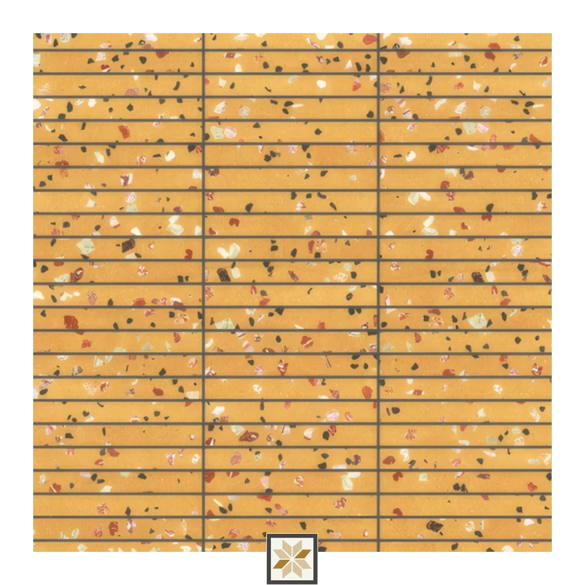 - Use as an accent or full wall covering in living rooms, bedrooms, offices and elevations. Perfect for interior designer projects, residential and commercial installations, showrooms and feature walls where a durable, stylish yellow tile with a Moroccan-terrazzo aesthetic is desired.