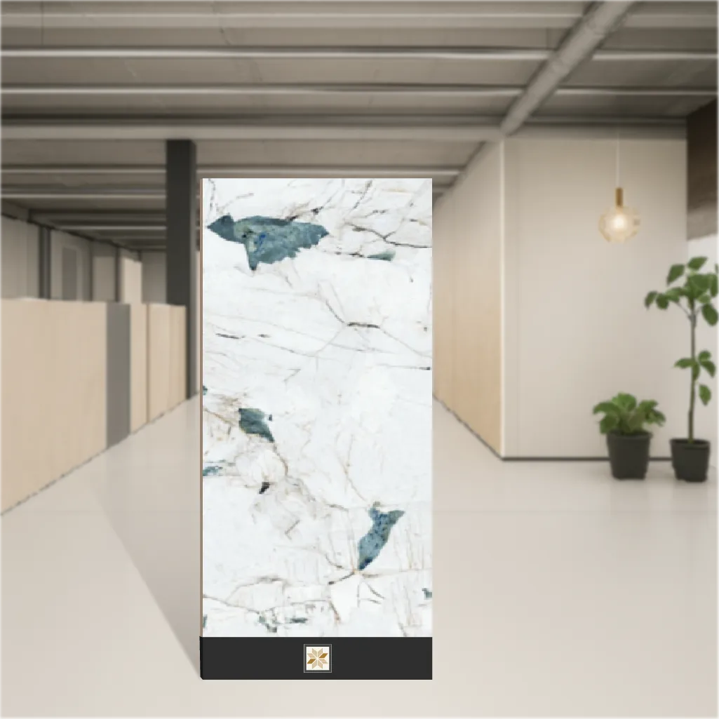 Details: Marble Look Floor & Wall Tile TL 08112 LC Crackstone Aqua presents a white marble aesthetic with subtle aqua crackstone veining. This vitrified tile measures 4x2 feet (1200 x 600 mm) with a 9 mm thickness and features a durable matte finish. Part of the Marbles & Stones series, it is designed for indoor use in both residential and commercial projects and is supplied in packs of 2 with a Random 4 pattern for natural variation. Highlights: • Marble look design that replicates natural stone with aqua crackstone texture • Vitrified base for high strength, low porosity and long-lasting performance • Matte finish for reduced glare and enhanced slip resistance • Large 4x2 feet (1200x600 mm) format and 9 mm thickness suitable for floors and walls • Pack Qty: 2 pieces; Random 4 layout for varied, realistic visuals • Ideal for indoor applications across residential and commercial settings Usecases: Suitable for flooring and wall cladding in living rooms, bedrooms, bathrooms, kitchens, corridors, lobbies and retail or office interiors. Also recommended for feature walls, backsplashes and hotel or hospitality spaces where a marble look with practical vitrified performance is desired.