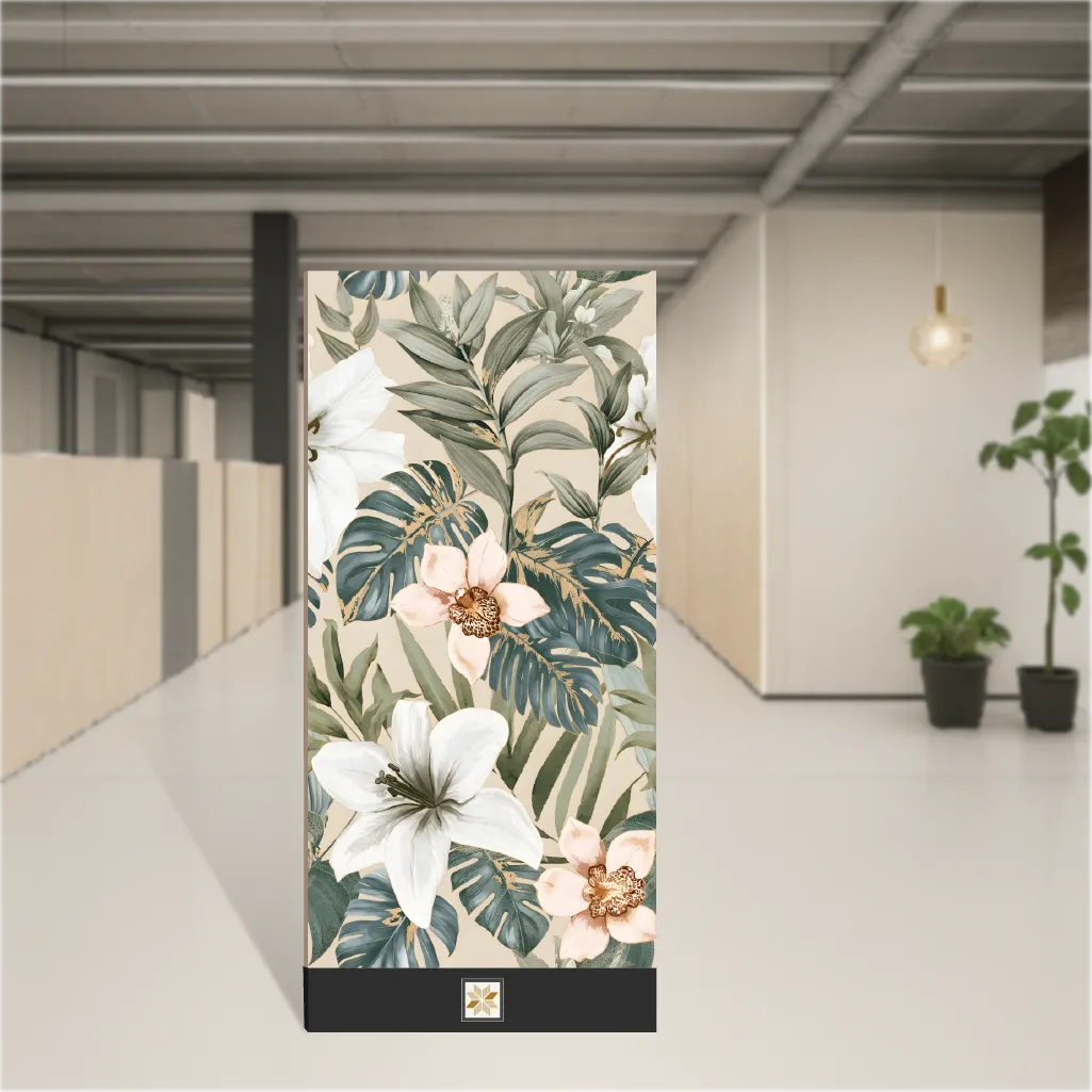 The Florelle Tropical Paradise wall tile from the Tropical Florals series combines delicate floral motifs with a contemporary tropical look to bring natural warmth to interiors. This large-format vitrified wall tile (1200 x 600 mm / 4 ft x 2 ft) features a Lustera-effect feather-feel matte finish and a 9 mm thickness that provide a soft touch, water resistance, and long-lasting durability. Its rectangular shape and lightweight handling make installation straightforward while maintaining strength for both residential and commercial use.