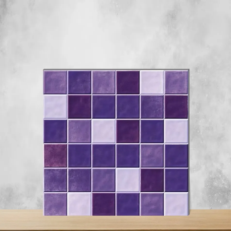 - Indoor wall applications where a glossy, mosaic purple tile is desired