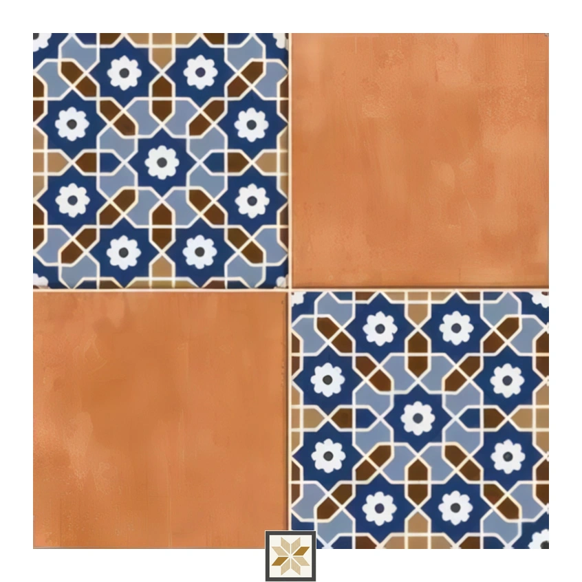 Vitrified Morissa Terracotta Azure Moroccans Square Tiles TL-1304 (12x12 inch | 7.5 mm)