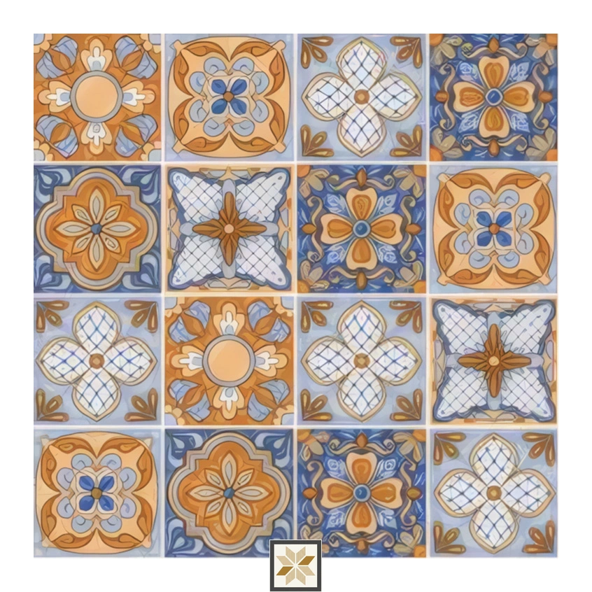 Ceramic Morissa Saffron Blue Moroccans Matt Square Tiles TL-2085 (12x12 inch | 7.5 mm)