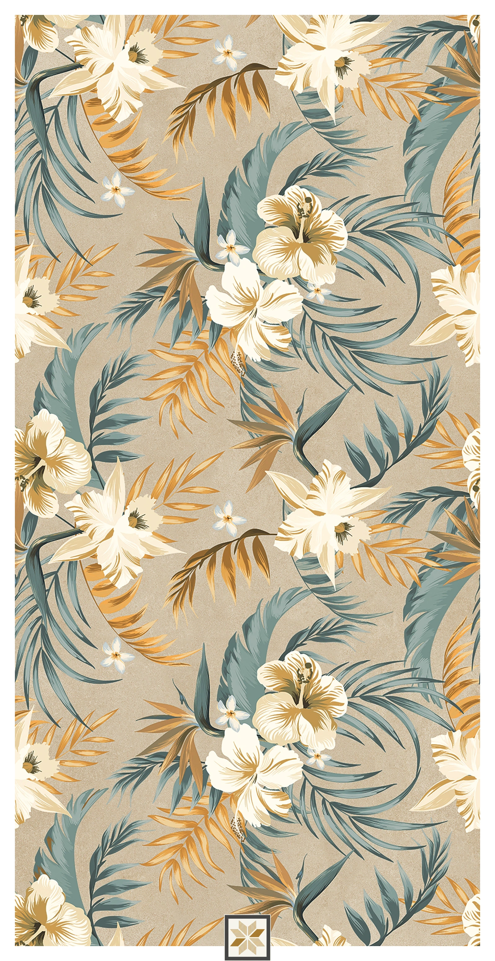 Vitrified Malaga Sand Decor Tropical Florals Matt Rectangular Tiles TL-4699 (4x2 feet | 9 mm)