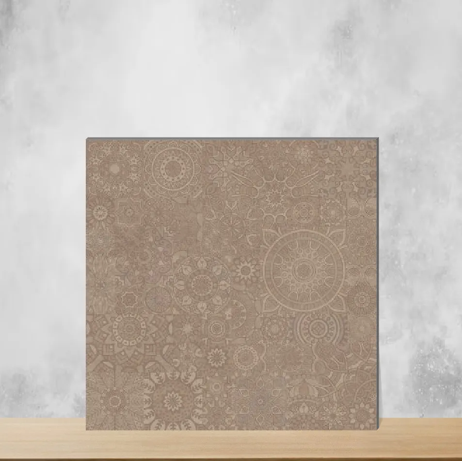 Carving Floor & Wall Tile in Mandala Copper Glitter finish — a 2x2 feet (600x600 mm) vitrified tile with a carved texture and subtle copper glitter highlights. Designed in the Carving Textures series, this matte-finish tile is 9 mm thick and offered in a pack of 4 pieces with 4 random design faces to create a rich, varied layout. The brown mandala carving brings decorative depth while vitrified composition ensures low porosity, high strength and easy maintenance for long-lasting performance.