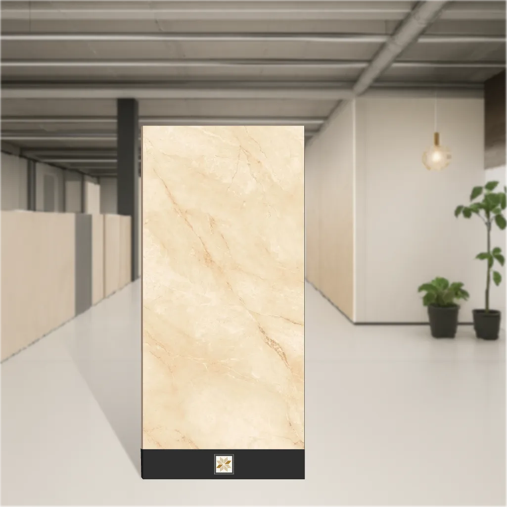 Details: Marlin Beige Glossy Finish 1200 x 600 mm Polished Wall & Floor Tile (Random 4) is a large-format, marble-look tile in a warm beige tone. Each piece measures 1200 x 600 mm (4x2 feet) with a 9 mm thickness and is supplied in packs of 2 pieces (SKU: TL-6558). From the Marbles & Stones series, this polished glossy tile delivers a refined reflective surface ideal for cohesive wall and floor treatments in both residential & commercial projects. Highlights: • Polished glossy finish for a high-sheen, easy-to-clean surface • Authentic marble look with subtle beige veining for elegant aesthetics • Large 1200 x 600 mm (4x2 feet) format minimizes grout lines for a seamless appearance • Robust 9 mm thickness designed for durable wall and floor use • Pack quantity: 2 pieces; versatile for coordinated wall & floor installations Usecases: Perfect for living rooms, dining areas and bedrooms seeking a premium marble effect; bathrooms and kitchens where a polished, stain-resistant surface is desired; commercial applications such as hotel lobbies, retail showrooms, office reception areas and corridors; also suitable for feature walls and continuous flooring installations where a glossy, upscale finish is required.