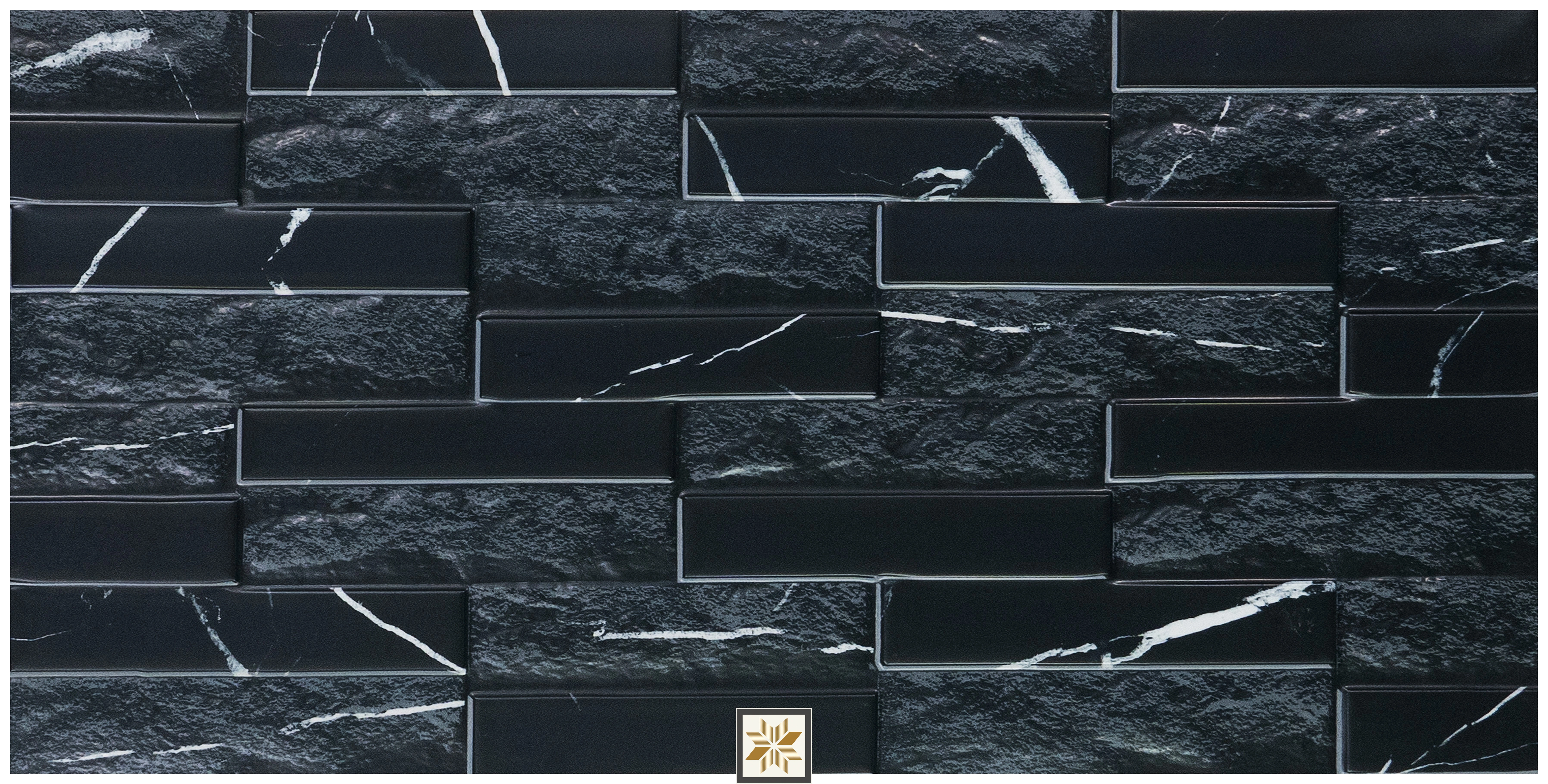 Faux subway wall tile in Miraq Marquina Black — a 24x12 inch (600x300 mm / 2 ft x 1 ft) ceramic tile with a matte finish and 8 mm thickness. Designed specifically for indoor wall use, this rectangular subway-look tile offers a contemporary backsplash appearance while being easy to handle and install. Supplied in packs of 5 pieces, it delivers a cost- and time-saving alternative to traditional small-format subway tiles without sacrificing durability or aesthetics.