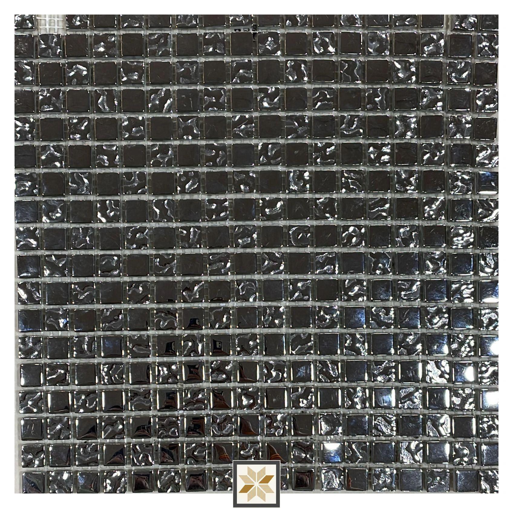 Metalic Plain Silvertex porcelain mosaic wall tile in a glossy silver finish, sized 300x300 mm (12x12 inch) with 15x15 mm mosaic pieces and 6 mm thickness. Designed for indoor wall use, this porcelain tile delivers the sleek look of metallic Silvertex in a durable, easy-to-clean glossy surface suitable for both residential & commercial projects.