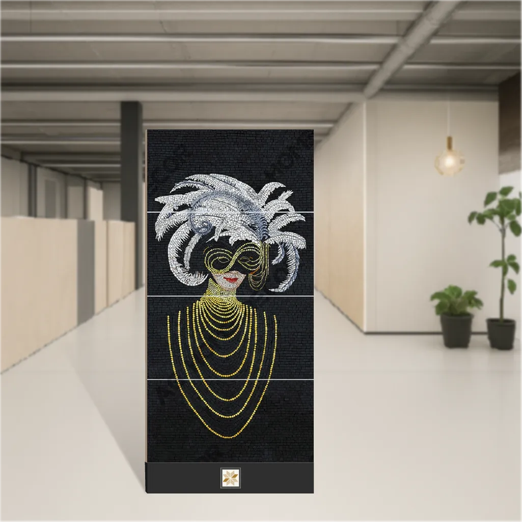 Details: A decorative Mosaic Wall Tile named "Midnight Masque" in a multi-colour palette, sized 4x2 feet (1200 x 600 mm). These vitrified wall tiles feature a glossy punch finish and a robust 9 mm thickness, designed for indoor use. Supplied as a pack of 4 pieces, the large-format mosaic panels deliver a continuous, upscale look with reduced joints and easy installation for both residential and commercial projects. Highlights: - Vitrified base for enhanced strength and low water absorption - Glossy punch finish for a reflective, polished appearance - Mosaic look and multi-colour pattern for striking visual interest - 9 mm thickness giving durability while remaining suitable for wall applications - Large 4x2 feet (1200x600 mm) format minimizes grout lines - Pack quantity: 4 Pieces, ready for quick wall coverage - Ideal for indoor settings, suitable for living rooms, bedrooms and offices Usecases: - Feature or accent walls in living rooms to create a focal point - Bedroom statement walls or headboard backdrops with mosaic texture - Office reception or meeting room walls for a sophisticated finish - Commercial interiors (retail displays, boutique walls) where a glossy mosaic look is desired - Any indoor wall application needing a durable, low-maintenance vitrified tile