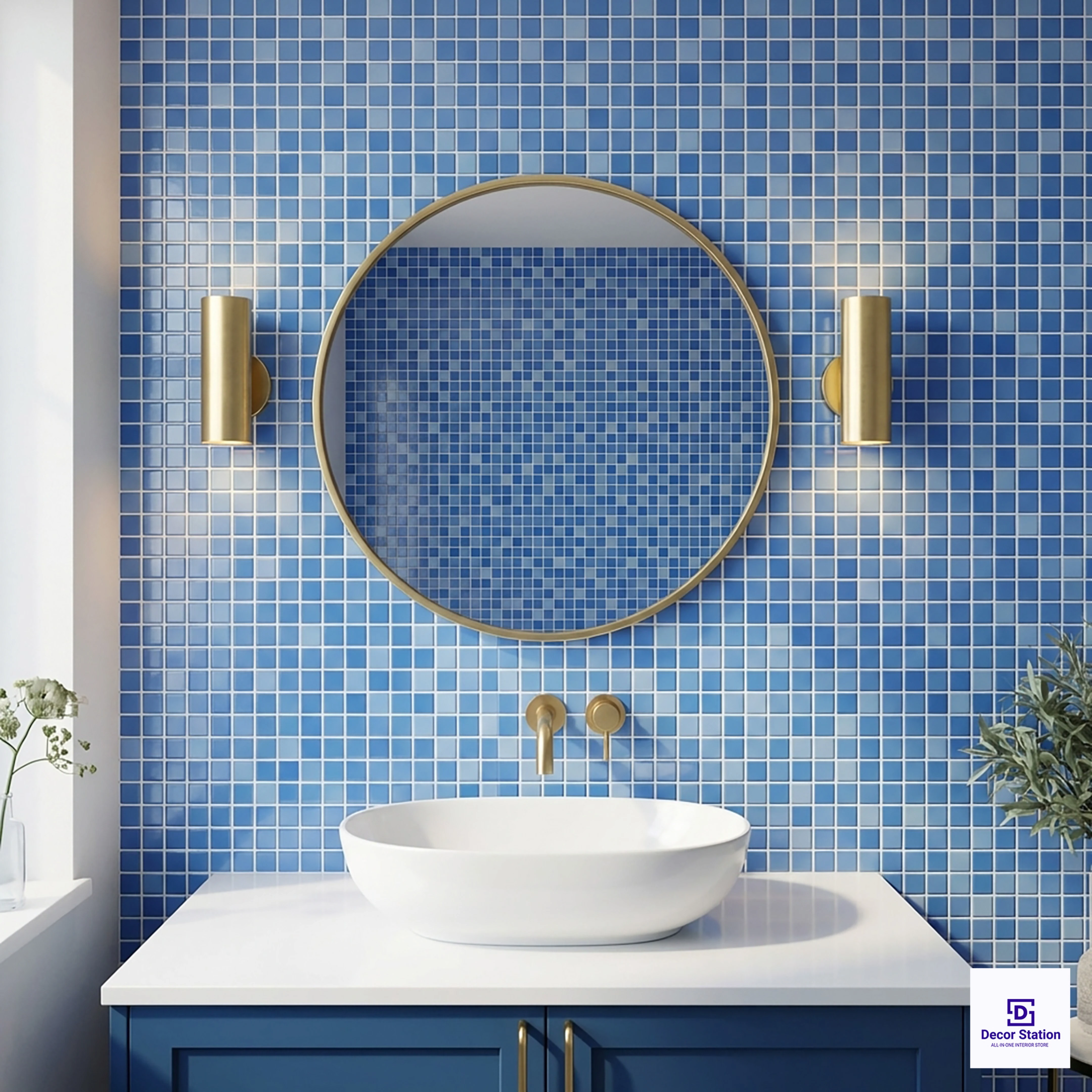MMT-7000 Blue Mosaic Glossy Pool 1x1 ft 5mm tile is a digital wall tile with a glossy finish, featuring a mosaic design with elegant Blue tones. It has a size of 317x317 mm (1x1 ft) with a thickness of 5 mm, making it suitable for both indoor and outdoor use. This square tile has a glossy finish, which provides a luminous, glossy surface ideal for pools and wet areas while ensuring easy maintenance.