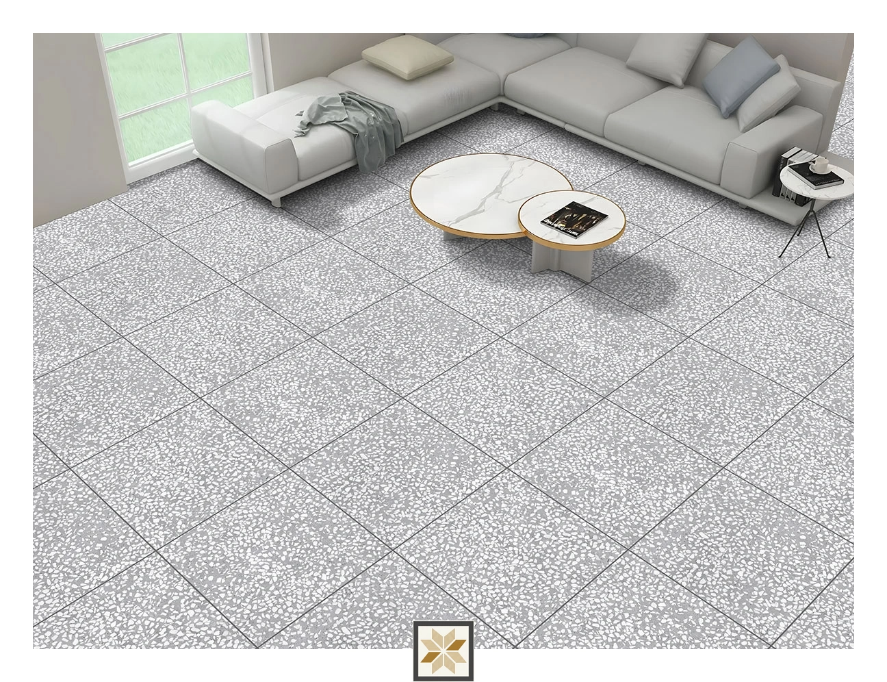 - Ideal for flooring in living rooms, bedrooms, bathrooms, dining areas, kitchens and offices. Suitable for both residential and commercial projects, including new constructions and renovations where a stylish, low-maintenance terrazzo floor tile is required.