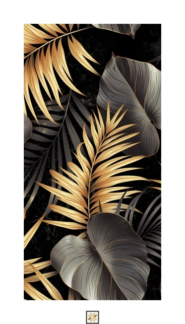 Vitrified Monzon Black Decor A Tropical Florals Glossy Rectangular Tiles TL-8879 (4x2 feet | 9 mm)