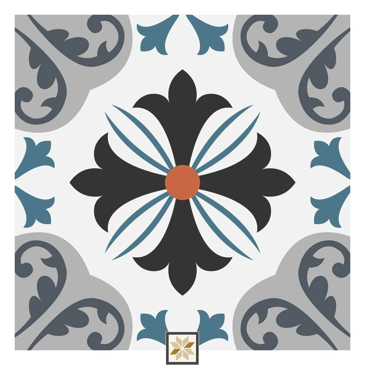 Vitrified Zellige Enigmatic Floral Moroccans Matt Square Tiles TL-4539 (12x12 inch | 9 mm)