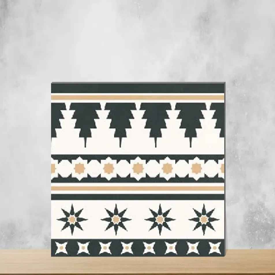 Vitrified Nero Star Border Geometric & Abstracts Matt Square Tiles TL-7505-B (8x8 inch | 9 mm)