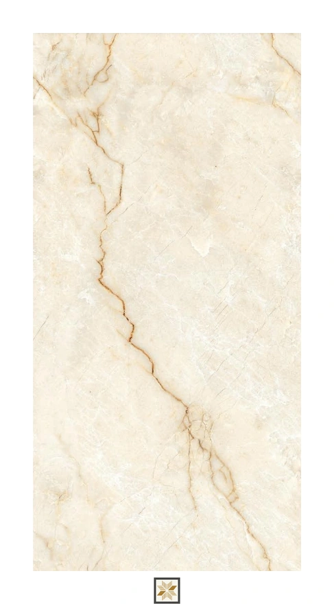 Vitrified Velvet Crema Marbles & Stones Hi-Glossy Rectangular Tiles TL-1843 (5.3x2.7 feet | 9 mm)