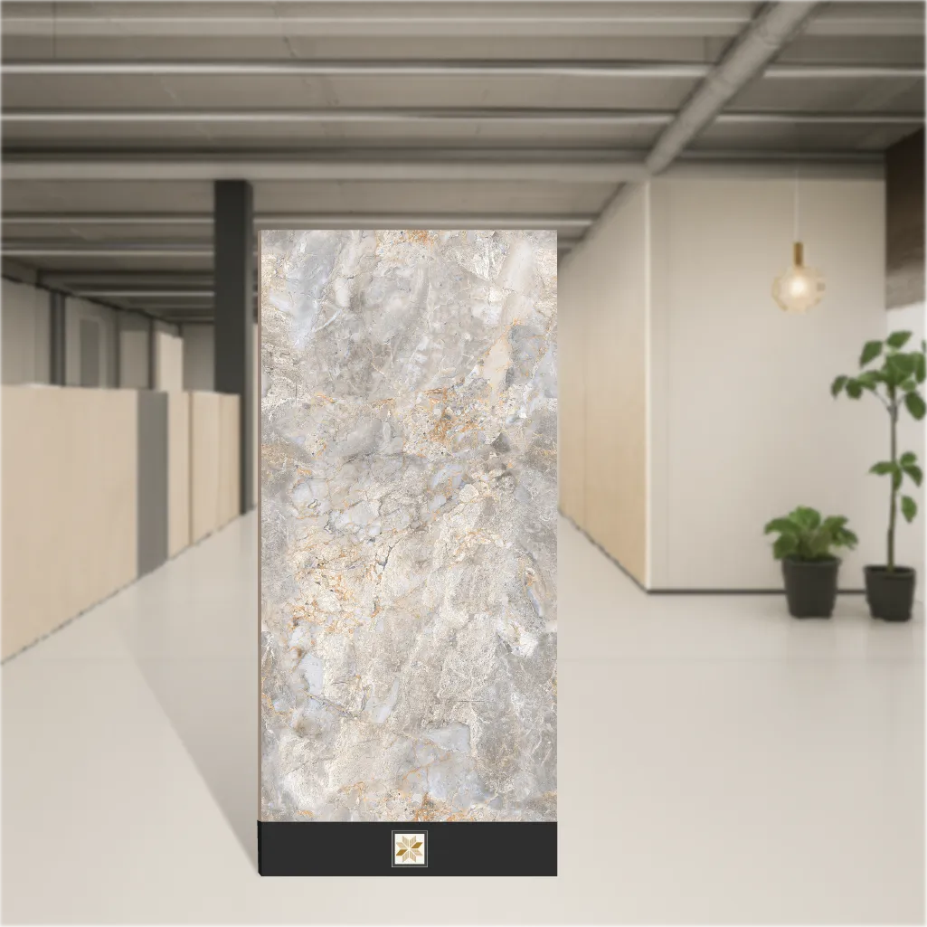 Details: Orienta Blue marble-look vitrified tile in a large 4x2 feet (1200x600 mm) format with a 9 mm thickness. This rectangular, grey marble-look PGVT (Polished Glazed Vitrified Tile) features a high-gloss finish and offers a durable, low-porosity vitrified body suitable for both wall and floor installations. Designed for indoor and covered outdoor use in residential and commercial projects. Pack quantity: 2 pieces. Highlights: - Authentic marble appearance with a glossy, easy-to-clean surface - Robust 9 mm vitrified construction for improved durability and scratch resistance - Large 4x2 ft (1200x600) size reduces joints for a seamless, elegant look - Suitable for wall & floor applications across living room, bedroom, bathroom and dining spaces - Ideal for offices, showrooms and high-traffic commercial areas; long-lasting finish maintains visual appeal Usecases: - Living room floors and accent walls to create a luxurious marble effect - Bedroom flooring and feature walls for a cohesive, upscale interior - Moisture-resistant bathroom floors and walls for practical elegance - Dining areas and offices where a glossy, easy-to-maintain surface is desired - Residential and commercial installations, indoor and covered outdoor applications where a large-format vitrified tile is preferred
