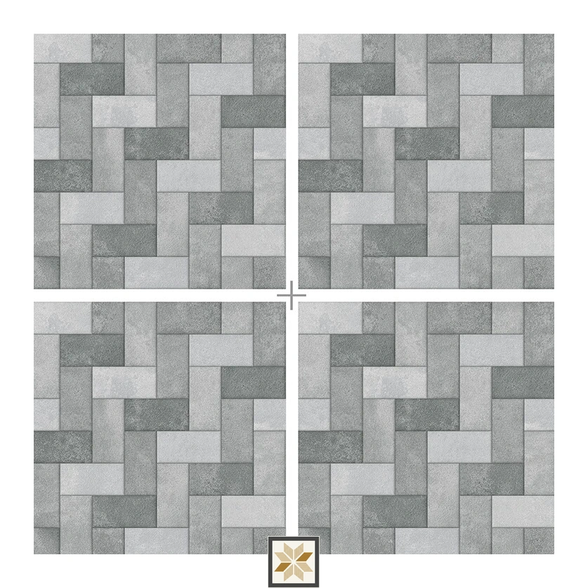 Details: Geometric Floor Tile from the Strada collection — Herringbone Haze (Grey). This 20 inch x 20 inch (20x20 inch) square vitrified floor tile features a punch matte finish and a 12 mm thickness, combining a refined geometric herringbone look with robust, long-lasting performance. Designed for floor use in both residential and commercial settings, it is heavy-duty, easy to clean, and suited for single-bonded installations; sold in packs of 3 pieces. Highlights: - Vitrified body for superior durability and extended lifespan - Punch matte finish offering a subtle, elegant appearance with anti-slip properties - 20" x 20" size for flexible design layouts and uniform coverage - 12 mm thickness for reliable strength and floor performance - Key attributes: Anti Slip, Easy to Clean, Easy to Install, Heavy Duty, Long Lasting & Durable, Scratch Resistance, Punch Surface Usecases: Ideal for outdoor and high-traffic floor applications: Parking, Balcony, Terrace, Patio, Courtyard and entrance areas. Perfect as Parking Tiles and Outdoor Tiles for Terrace, Balcony or Courtyard in both residential and commercial projects where weather resistance and durable, low-maintenance flooring are required.