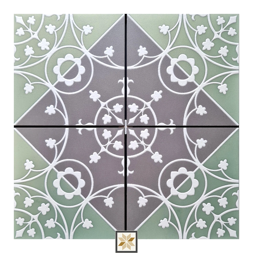 Details: Infinity Floral Wall Tile is a handcrafted vitrified wall tile sized 197 mm x 197 mm (8x8 inch) with a 9 mm thickness. Featuring a green floral motif from the Tropical Florals series, this square tile is designed for indoor use in both residential and commercial projects. The vitrified base provides strength and low porosity while the handcrafted finish delivers an attractive floral look and consistent color tone. Supplied as single-piece packs, it fits standard wall tile installations and complements contemporary and traditional interiors. Highlights: - Vitrified construction for enhanced durability, moisture resistance, and easy maintenance. - Handcrafted floral design in green for an elegant, natural aesthetic. - 197 x 197 mm (8x8 inch) square format, 9 mm thickness for reliable wall application. - Specifically made as a wall tile (tiles_surface: Wall) suitable for indoor settings. - Ideal for both residential & commercial use and part of the Tropical Florals series. Usecases: - Feature or accent walls in living rooms to add a decorative focal point. - Bedroom headboard walls or backdrop panels for a soft floral ambience. - Kitchen backsplashes to introduce pattern and color while remaining easy to clean. - Bathroom wall cladding for a stylish, moisture-tolerant surface. - Dining area and office reception feature walls to enhance interior character.