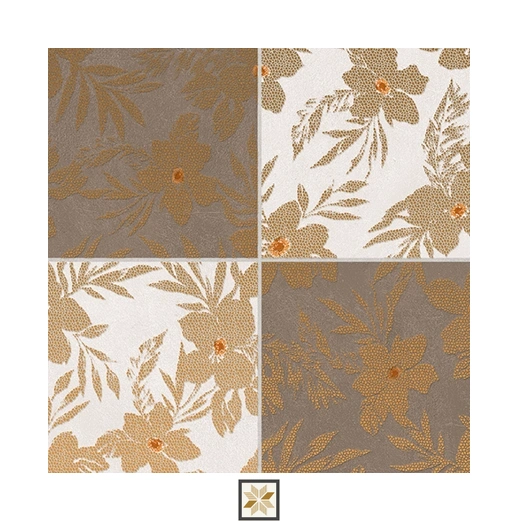 - Renovation projects requiring a matte ceramic wall tile with a brown floral look and gold highlights