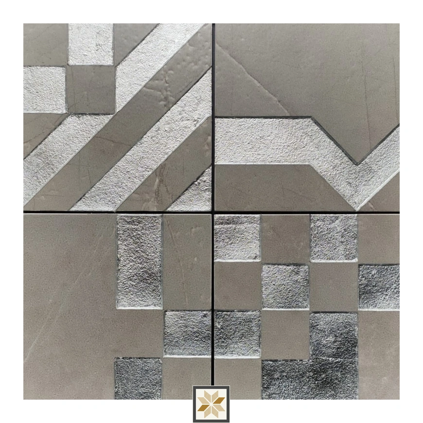 Details: Arte Metallic Wall Tile in 148 mm x 148 mm (6x6 inch) format with a 9 mm vitrified body. Handcrafted with a precious metal finish, this square, metallic-look wall tile features a random design in silver-orange tones. Designed for indoor dry areas, it suits both residential and commercial projects and is sold as 1 piece per pack. Highlights: • Vitrified 9 mm construction for strength and long-lasting performance • Handcrafted precious metal finish for a premium metallic appearance • Random design for unique, non-repetitive patterns • Compact 148 x 148 mm (6x6 inch) square size ideal for wall applications • Optimized for dry indoor spaces such as living rooms and bedrooms Usecases: • Accent and feature walls in living rooms and bedrooms • Decorative wall panels in dining areas, kitchens (dry zones) and offices • Reception areas, boutiques and other commercial interiors • Bespoke installations requiring a handcrafted metallic aesthetic