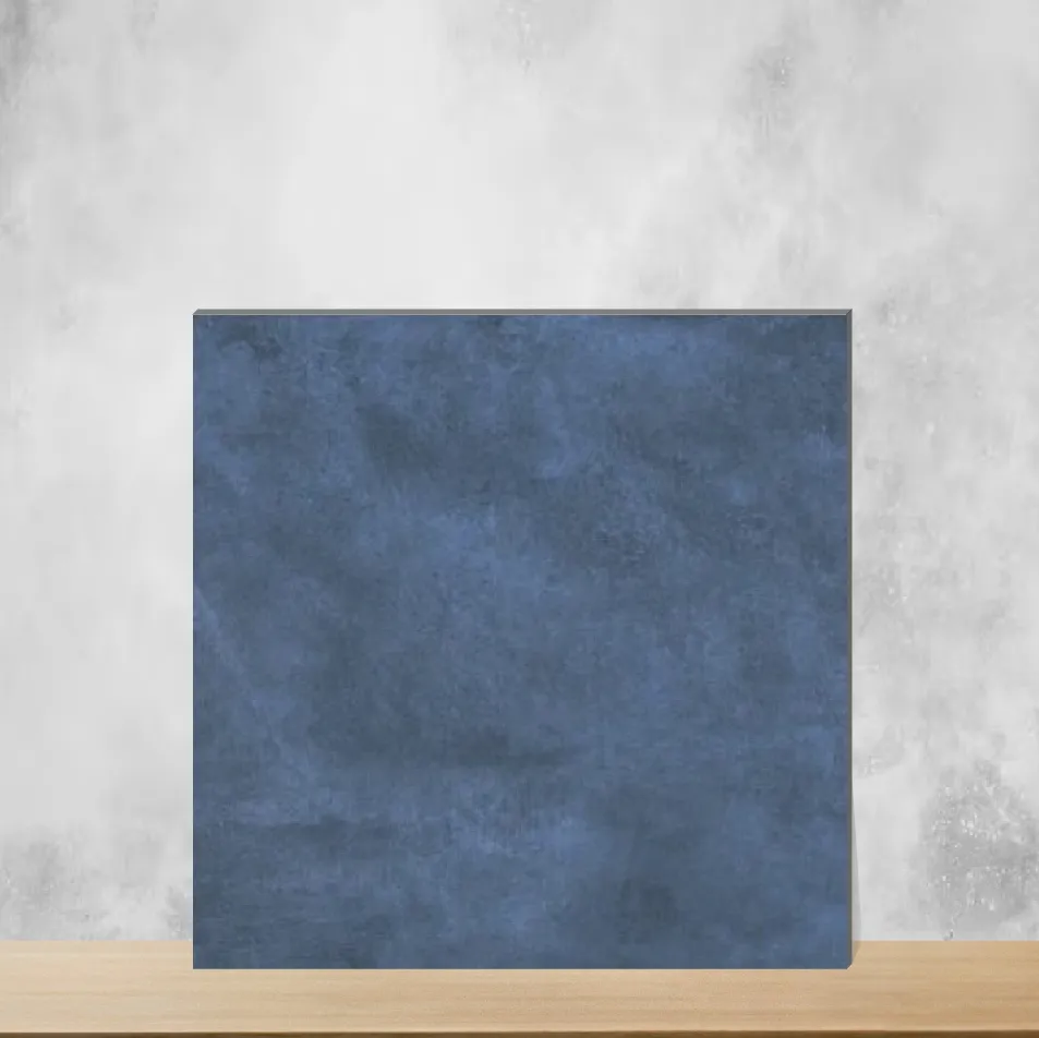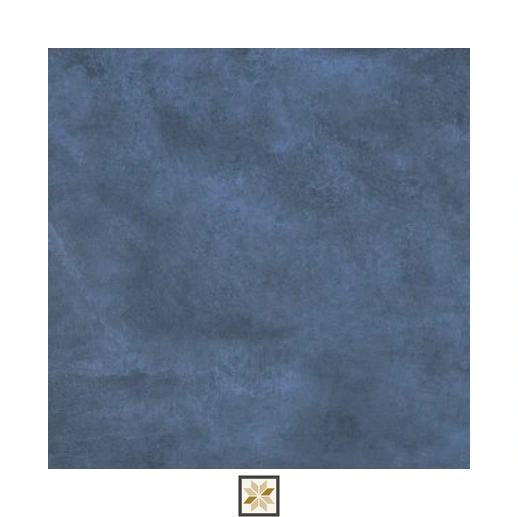 Blue cement-look vitrified tile (Cementum Azul) in 2x2 feet (600 x 600 mm) format with 12 mm thickness. Features a carved matte finish that reproduces authentic cement texture while providing a low-porosity, durable vitrified body. Supplied as a pack of 4 pieces, suitable for both residential & commercial installations.