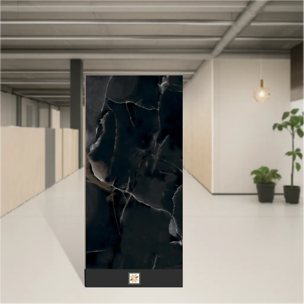 Details: Prime Onyx Nero marble-look vitrified tile in a large 4x2 feet (1200 x 600 mm) rectangular format. 8.5 mm thick with a Lustera effect feather-feel matte finish, this porcelain/vitrified tile reproduces natural marble veining in a deep black tone. Pack of 2 pieces, designed for both wall and floor installations in residential and commercial indoor spaces. Highlights: - Large-format 4 ft x 2 ft tile for minimal grout lines and a seamless marble appearance - Vitrified/porcelain marble tile construction for superior durability and low maintenance - Feather-feel Lustera matte finish delivers natural marble look with a soft, anti-slip texture - Suitable as a marble wall tile and marble floor tile for living room, bedroom and bathroom applications - Slim 8.5 mm profile, rectangular shape; part of the Marbles & Stones series Usecases: Ideal for living room and bedroom floors, feature walls and cladding, bathroom floors and walls, dining areas and office receptions. Perfect for large marble tile installations where a premium Marble Tile For Living Room or Marble Tile For Bedroom aesthetic is required; fits covered patios and other indoor residential and commercial spaces.