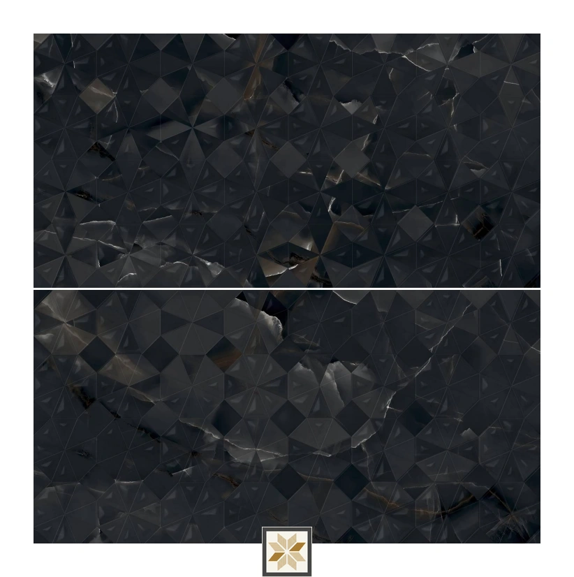Details: Punch Wall Tile Prime Onyx Nero Triangle is a vitrified wall tile in deep Onyx Nero black, sized 4x2 feet (1200 x 600 mm) with an 8.5 mm thickness. From the Punch Textures series, it delivers a Lustera Effect and Feather Feel surface in a refined Matte Finish. Each pack contains 2 pieces with 2 random designs to introduce subtle variation and visual depth, suitable for indoor residential & commercial installations. Highlights: - Vitrified base for enhanced durability and low water absorption - Matte Lustera Effect with Feather Feel texture for a premium tactile look - Large 4x2 feet rectangular format (1200 x 600 mm) for fewer joints and a seamless appearance - 8.5 mm thickness balances strength and ease of installation - Pack qty: 2 pieces; includes 2 random designs to create dynamic wall patterns - Ideal for indoor applications across homes and commercial spaces Usecases: - Feature and accent walls in Living Room and Bedroom - Wall cladding in Bathrooms and Shower enclosures (indoor use) - Stylish walls for Dining areas and Office reception spaces - Decorative panels in commercial lobbies and hospitality interiors - Covered patio or transitional indoor spaces where a matte, textured black tile is desired