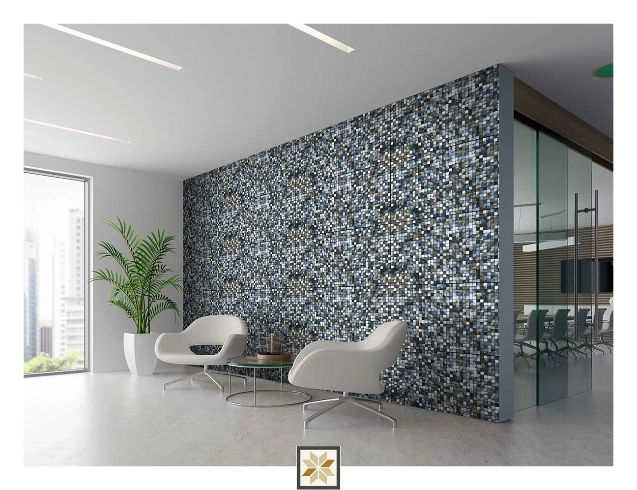 - Office and commercial spaces: attractive, heavy-traffic floors and feature walls with a mosaic aesthetic
