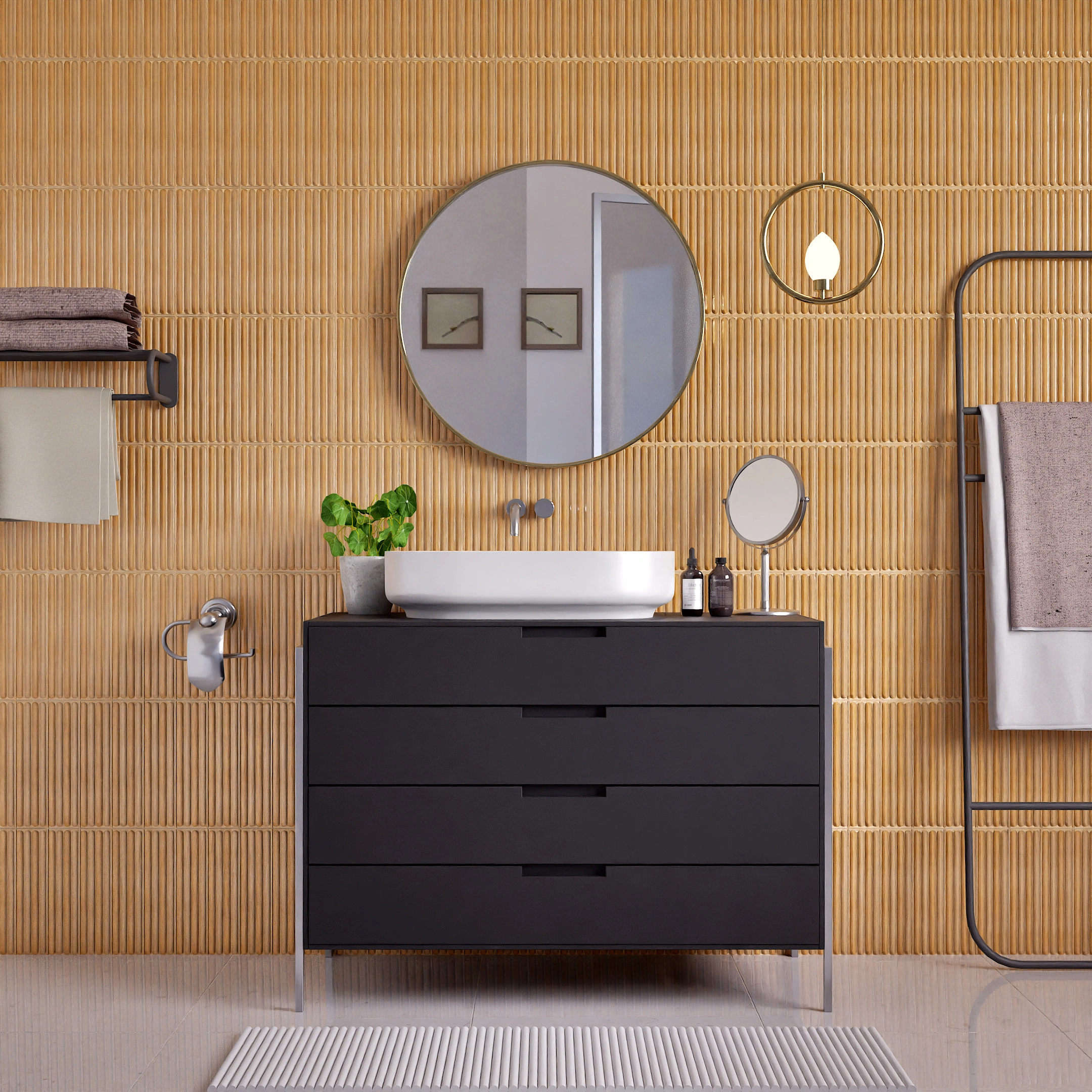 - Basin/vanity accent walls to highlight focal areas