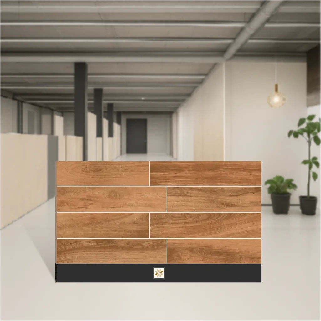 Details: Brown wood-look vitrified tile in Royal Brown shade, offered in a 48x8 inch (1200 x 200 mm) plank format. 9 mm thick with a carved matte finish that reproduces natural wood grain. Part of the Wooden Effect series, the tile uses vitrified base material for strength and low absorption. Pack quantity: 5 pieces. Display size shown as 4 ft x 7.8 inch (48x8 inch). Designed for Residential & Commercial projects. SKU: TL-8283. Highlights: - Realistic wood appearance with a matte carving finish for authentic texture and reduced glare. - Durable 9 mm vitrified construction delivering long life and low water absorption. - Large plank size (48x8 inch / 4 ft x 7.8") for continuous wood-look layouts and fewer grout lines. - Royal Brown color provides warm, natural tones suitable for varied design schemes. - Pack of 5 pieces, easy to install and maintain; ideal where a wood look with tile performance is needed. Usecases: - Suitable for parking and terrace areas that require a durable, low-maintenance wood-look surface. - Ideal for residential flooring applications such as living rooms, balconies and verandas. - Well suited to commercial spaces including showrooms, corridors, lobbies and covered outdoor walkways.