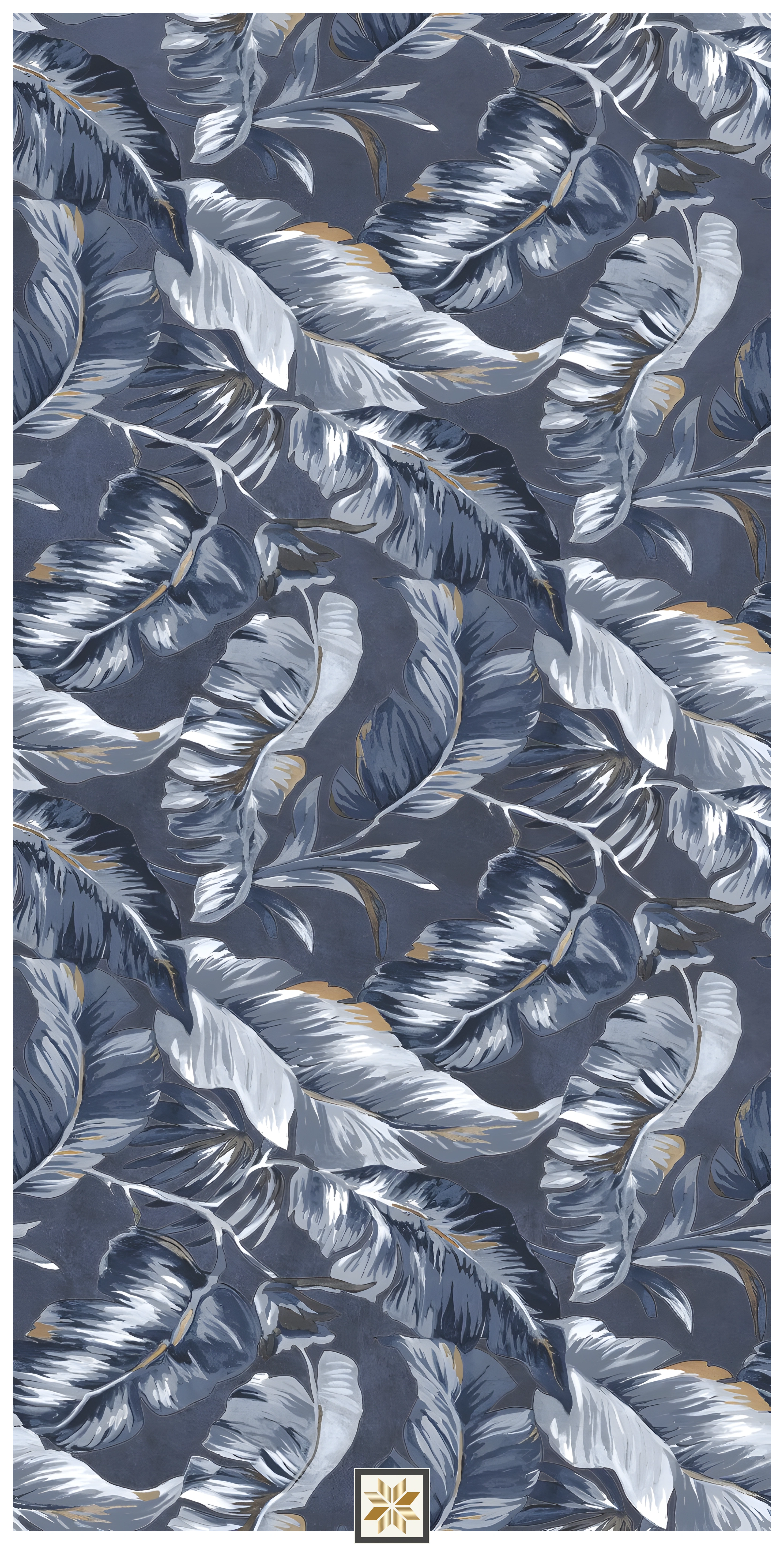Vitrified Prestige Imperial Cobalt Decor Tropical Florals Hi-Glossy Rectangular Tiles TL-6808-C (4x2 feet | 9 mm)