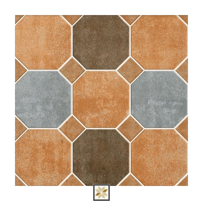 Vitrified Strada Terracotta Octanne Hexagonal Tiles Matt Square Tiles TL-621 (16x16 inch | 12 mm)