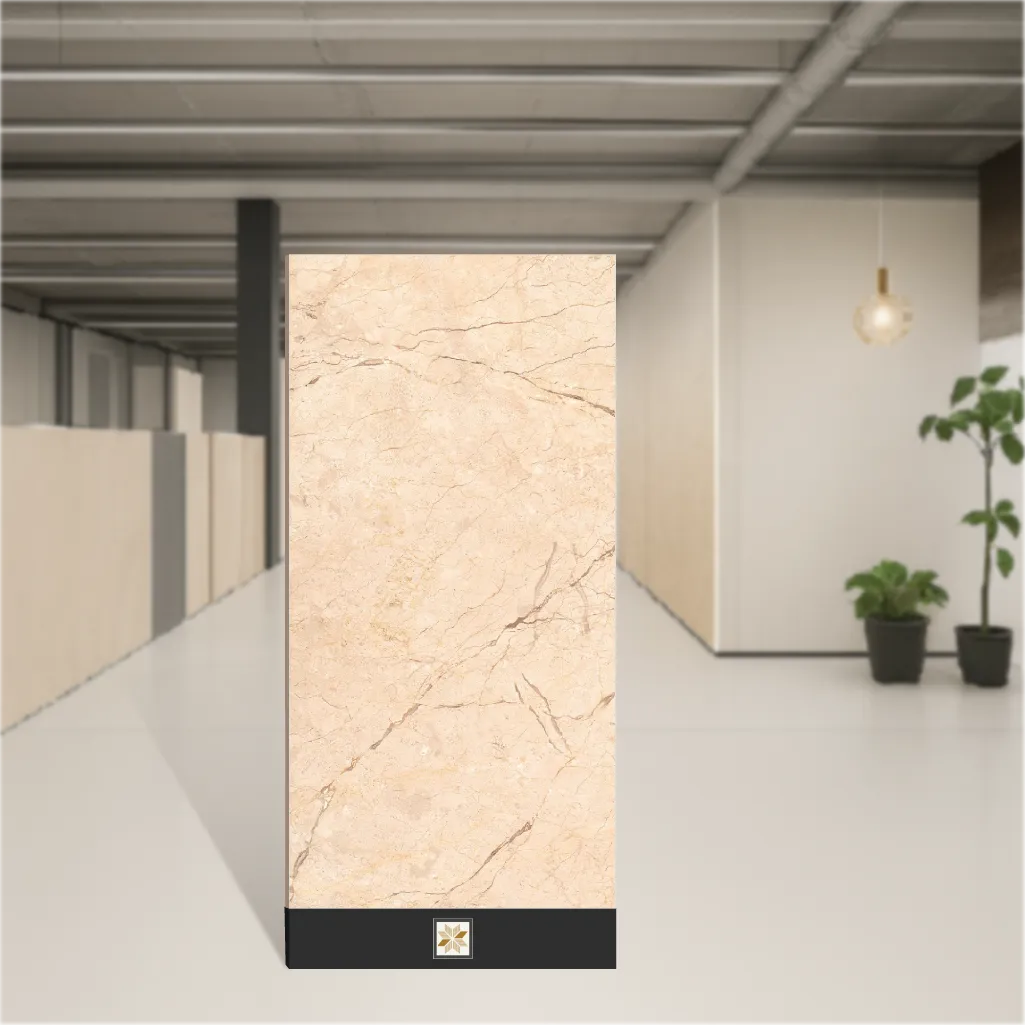 Sevellia Crema 1200x600 mm (4x2 feet) vitrified wall and floor tile with a glossy marble-look finish. At 9 mm thickness, this cream-colored GVT tile offers the strength, low porosity and easy maintenance of vitrified material, making it ideal for both residential & commercial projects. Available in packs of 2 pieces, it provides large-format continuity with reduced grout lines and a premium marble appearance for indoor and outdoor applications.
