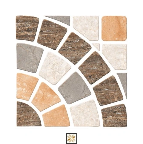 Patterned vitrified floor tile in a Multi Colour geometric & abstracts design. Sized 400 x 400 mm (16x16 inch) with a 12 mm vitrified body and a matte finish, it delivers a durable, low-glare surface engineered for floor applications in both residential and commercial settings. Suitable for indoor and outdoor use.
