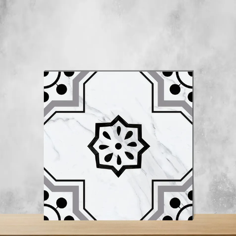 Details: The Monochrome Marbello from the Morissa series is a Moroccan-inspired 12x12 inch (1ft x 1ft) square ceramic tile with a vitrified ceramic body and an 8 mm thickness. Its matte, low-sheen surface showcases geometric monochrome patterns that bring an exotic, designer look without gloss. Finished in black tones and built for indoor use, these durable floor & wall tiles are water-resistant, anti-slip and UV-stable, making them suitable for both residential and commercial projects. Supplied in packs of 8 pieces for convenient installation and pattern planning. Highlights: - Moroccan-inspired geometric design that works as Moroccan floor tiles, Moroccan wall tiles and accent/feature wall tiles - Matte, tactile finish (matte finish Moroccan wall tiles) for a non-reflective, contemporary appearance - Vitrified ceramic construction for long-lasting durability, moisture resistance and UV protection - Size: 1ft x 1ft (12x12 inch); Thickness: 8 mm; Shape: Square; Display colour: Black - Anti-slip and water resistant — ideal for wet areas such as bathrooms and kitchens - Versatile for floor and wall use across living room, bedroom, balcony, kitchen, dining and office - Pack quantity: 8 pieces; designed for easy layout and seamless pattern creation - SEO-relevant keywords: Moroccan tiles, Moroccan design tile, Moroccan tiles for bedroom, Moroccan tiles for bathroom, geometric Moroccan tiles, black and white Moroccan tiles, 1x1 Moroccan tiles, designer Moroccan tiles Usecases: - Bathroom floors and walls, shower surrounds and other wet areas where water resistance and anti-slip properties are essential - Kitchen floors and backsplashes to introduce a stylish Moroccan accent - Balconies, covered patios and dining areas for patterned flooring or accent zones - Living rooms and bedrooms for feature walls or coordinated floor-and-wall schemes that add character - Offices, boutiques and commercial reception areas seeking a durable, ornamental tile that blends style with functionality