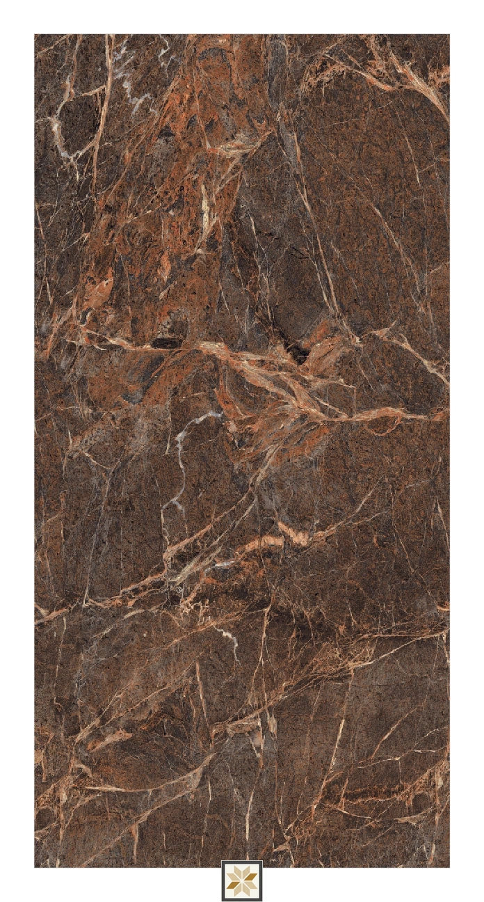 Vitrified Spider Brown Marbles & Stones Hi-Glossy Rectangular Tiles TL-664 (4x2 feet | 9 mm)