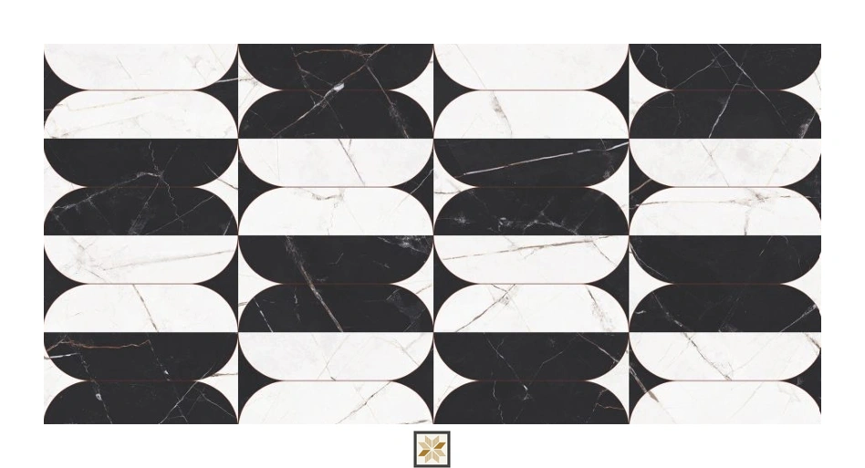 Vitrified Gravier Radiant White Embellish Highlighter Tiles Hi-Glossy Rectangular Tiles TL-6342-B (4x2 feet | 9 mm)