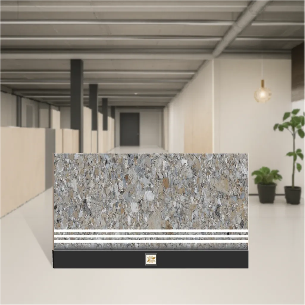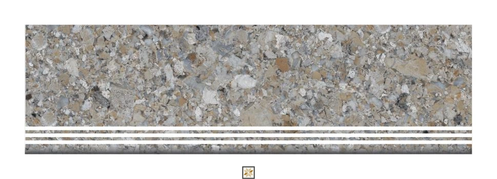 Details: Terrazzo Charm vitrified stair tile set in Stone Grey delivers a natural stone look in a neutral grey tone with a matte finish. Each set contains one step tile (900 x 300 mm / 36x12 inch) and one riser tile (900 x 200 mm / 3 ft x 8 inch). At 9.5 mm thickness, these tiles are engineered for stair installations and intended for indoor use in residential and commercial projects. Part of the Marbles & Stones series, sold as a Set (pack qty 1). Highlights: - Vitrified construction for durability and easy maintenance - Matte finish for a subtle, non-reflective surface - Authentic stone look in Grey to suit diverse interiors - Ready-to-install stair sizes: Step 900x300 mm (36x12 in) and Riser 900x200 mm (3x8 in) - 9.5 mm thickness optimized for floor/stair applications - Ideal for indoor stairs; suitable for both residential & commercial settings Usecases: - Stair treads and risers in homes, apartments and commercial buildings - Renovation or new staircase projects requiring coordinated step and riser tiles - Indoor landings, corridors and lobby stairways where a stone-look aesthetic is desired - Flooring applications on stairs and adjacent floor surfaces