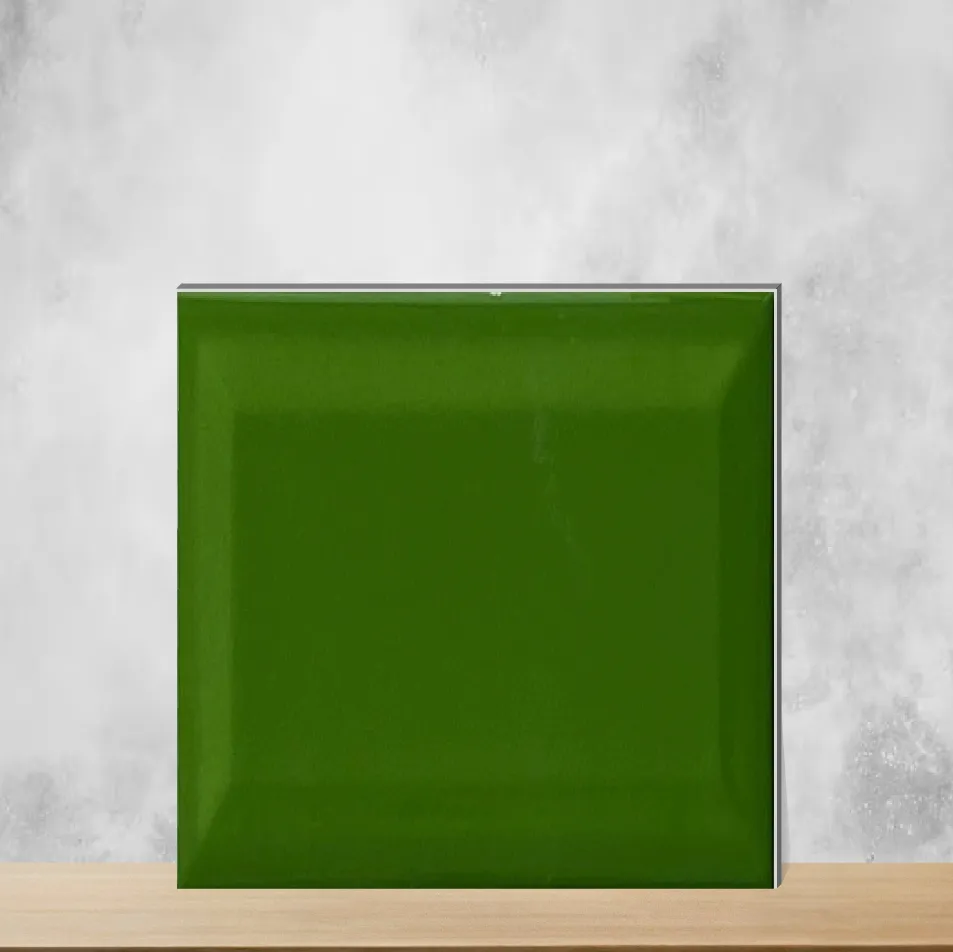 8x4 inch (200x100 mm) Oasis Green bevelled ceramic wall tile with a glossy finish and 7 mm thickness. This subway-look tile combines vibrant Oasis Green color with refined, exotic design to create an eye-catching statement suitable for both domestic and cosmopolitan markets. Pack quantity: 50 pieces. Designed for indoor & outdoor installation in residential & commercial projects, ideal for subway and backsplash applications.