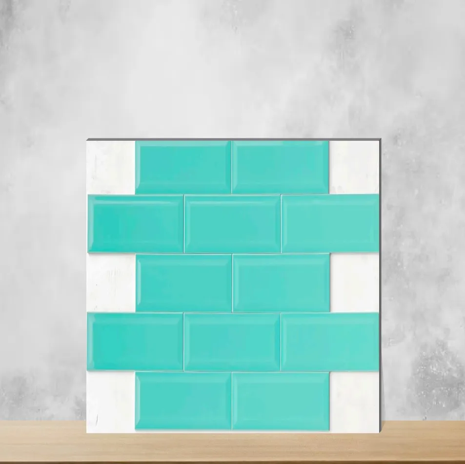 Details: 12x4 inch Aqua Green bevelled subway tile with a glossy finish. Each tile measures 300x100 mm (12x4 inches) and is 6 mm thick; supplied in a pack of 33 pieces. Designed for both residential & commercial projects, this subway-style tile combines a classic bevelled profile with a vibrant aqua green color, making it ideal for backsplashes, wall cladding and decorative installations for indoor & outdoor use. Highlights: - Glossy Aqua Green surface provides a bright, reflective finish for modern and traditional interiors. - Bevelled edges create the authentic subway and backsplash look. - Compact 12x4 inch (300x100 mm) size is perfect for kitchen backsplashes, shower walls and feature bands. - Durable 6 mm thickness and suitability for indoor & outdoor applications. - Pack quantity of 33 pieces simplifies ordering for living room, bedroom, office and commercial projects. Usecases: - Kitchen and bathroom subway backsplash installations and shower niches. - Accent and feature walls in living rooms, bedrooms and offices. - Wall cladding and decorative strips in commercial spaces such as cafes, retail and hospitality venues.