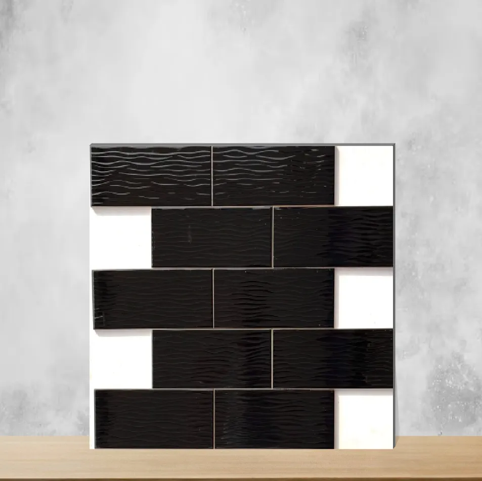 Details: 12x4 inch Black Wave glossy finish tile (SKU: TL-6117-H) designed for subway and backsplash installations. This 12x4 inch subway-look tile features a subtle wave texture and a durable 6 mm thickness, offered in packs of 33 pieces. Suited for both indoor & outdoor use, its high-gloss surface and black color deliver a sleek, modern aesthetic for residential & commercial projects. Highlights: - Subway and backsplash style with wave texture for added visual interest - Glossy finish for easy cleaning and enhanced shine - Compact 12x4 inch tile size, ideal for classic subway layouts - Robust 6 mm thickness for reliable performance - Pack quantity: 33 Pieces for convenient coverage - Versatile for Indoor & Outdoor applications in living room, bedroom, office, and more - Suitable for Residential & Commercial settings (TL 00001 H) Usecases: - Kitchen backsplash or accent strip using black glossy subway tiles - Feature wall in living room or bedroom for a contemporary look - Office reception or meeting room accent to create a polished finish - Commercial retail or hospitality interiors needing durable, stylish tiles - Sheltered outdoor walls and transitional spaces where indoor/outdoor tiles are required